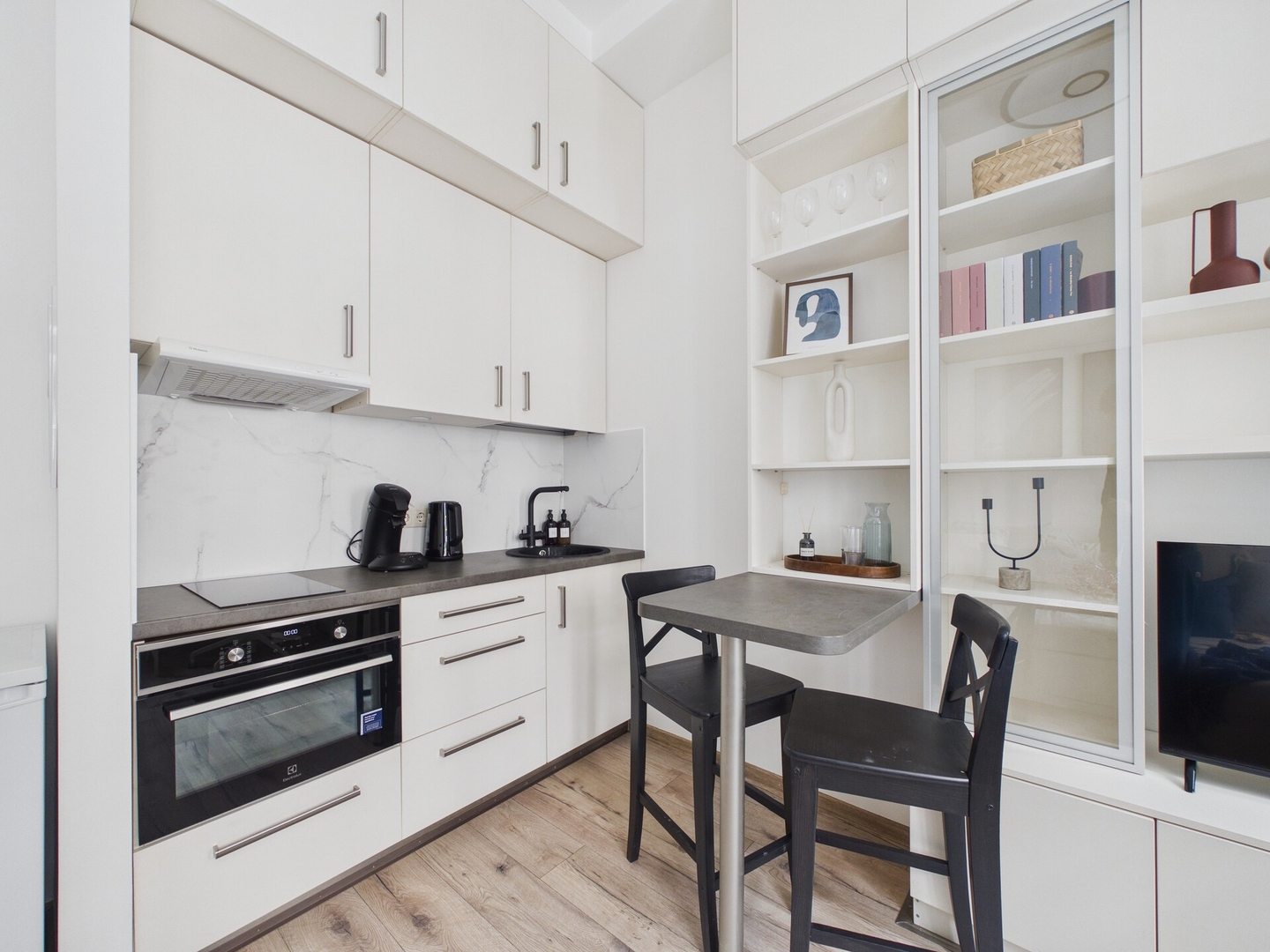 The studio is designed for up to two guests and makes smart use of space. It includes a sofa bed, desk, SMART TV and Wi-Fi. The kitchen is equipped with the essentials: electric stove, fridge, freezer, electric kettle, Philips Senseo coffee machine, pots, pans, dishes, and cutlery - everything you need to prepare simple meals.