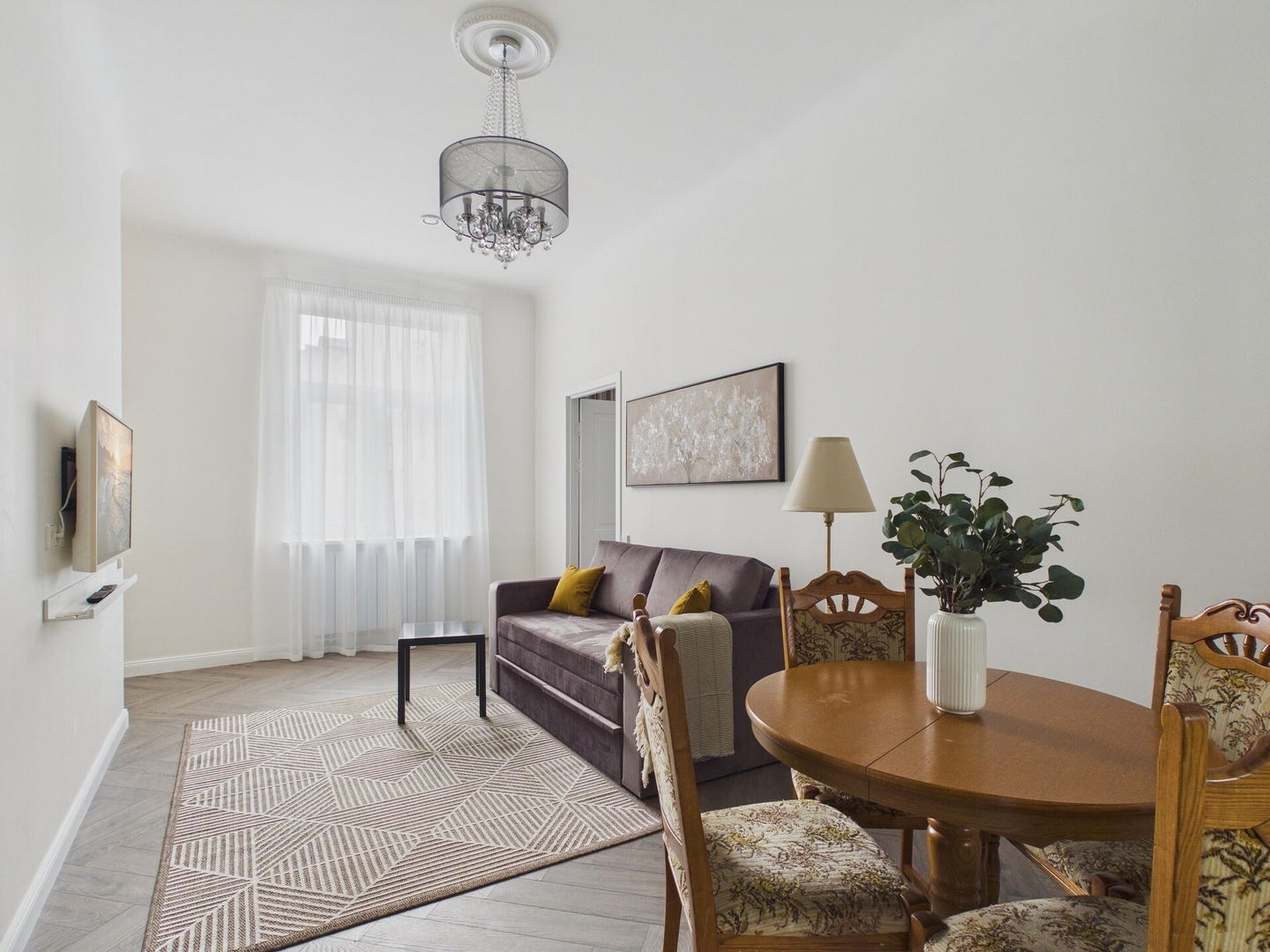 A thoughtfully designed one bedroom apartment in the beautiful Art Noveau quarter, within walking distance of the Old Town. The apartment is located on the 3rd floor of a historic building (stairs only) and offers a calm, comfortable base for city breaks, business trips, or longer stays. Equipped with modern amenities and well suited for guests who value quiet comfort and a beautiful location.